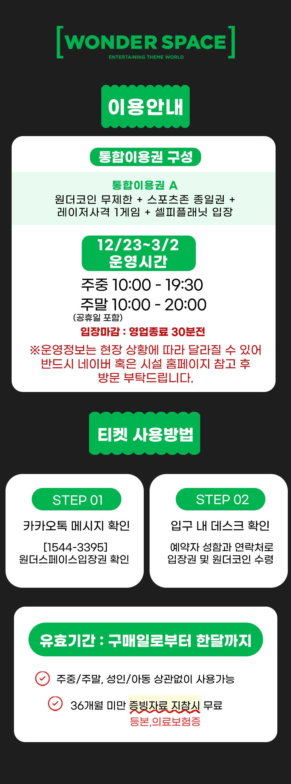 * 120cm 이하 미취학 아동, 임산부는 이용이 제한됩니다.